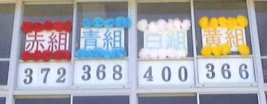 今日の運動会のスローガン”みんなかがやけ四つの色たち” |